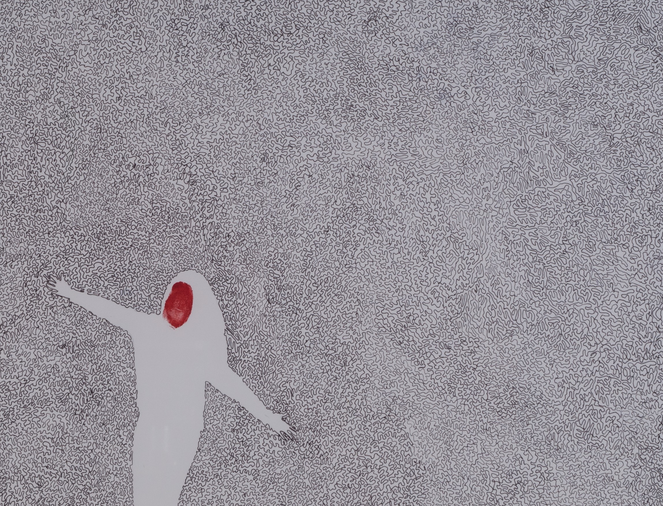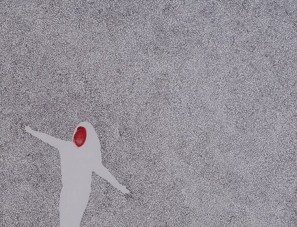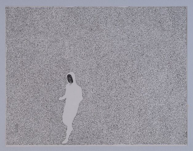 Medium: Black pen and acrylic paint on paper