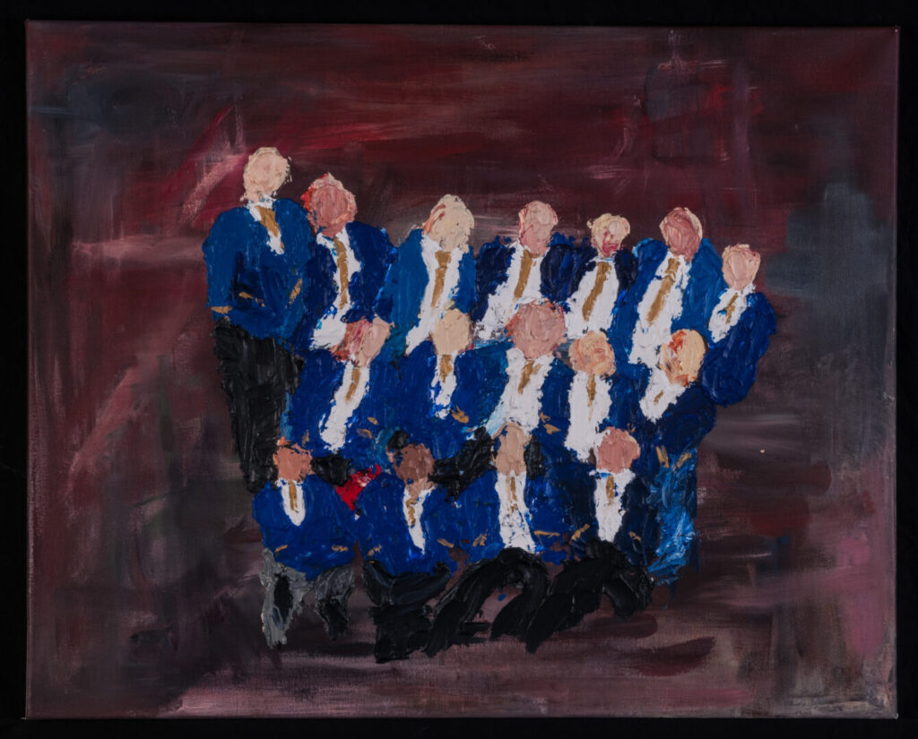 ‘I have done this painting in memory of graduating from high school. It features me and thirteen other college leaders of the graduating year of 2014 from St Michael’s College. It was a memorable moment spending time with my colleagues and teachers most who I never seen again. I intended to capture my personal story of settling in amongst an Australian community. Every migrant faces challenges coming to a new country. The kindness and respect of my friends and teachers helped me to elude my challenges and to settle in. It was an unforgettable experience that made me who I am today. The faces of each student in the painting denote the equality amongst all students regardless of their race and culture background. It’s been painted in an abstract expression style. A key influence to this particular style of painting is Australian artist Ben Quilty who has worked in Afghanistan as a war artist.’