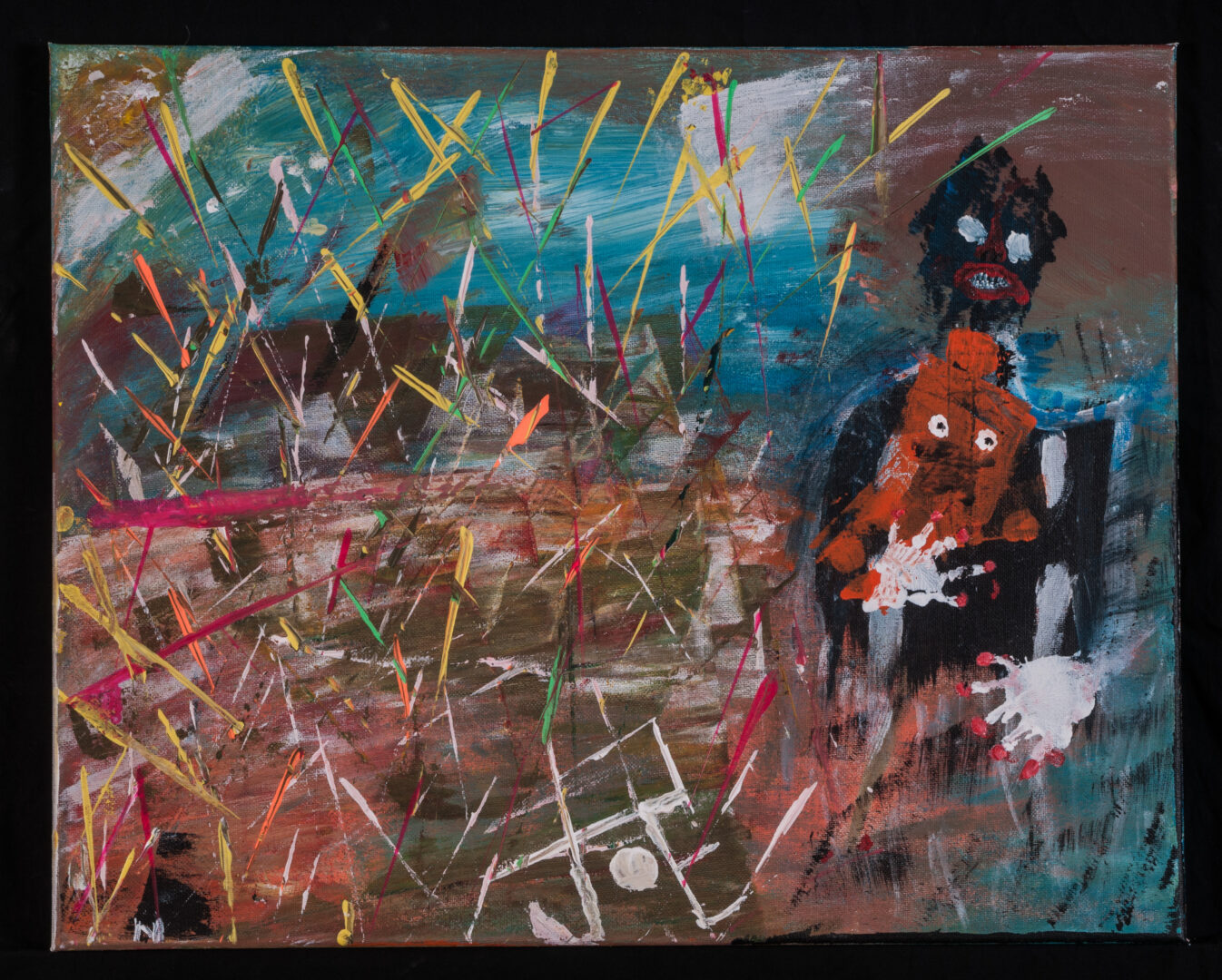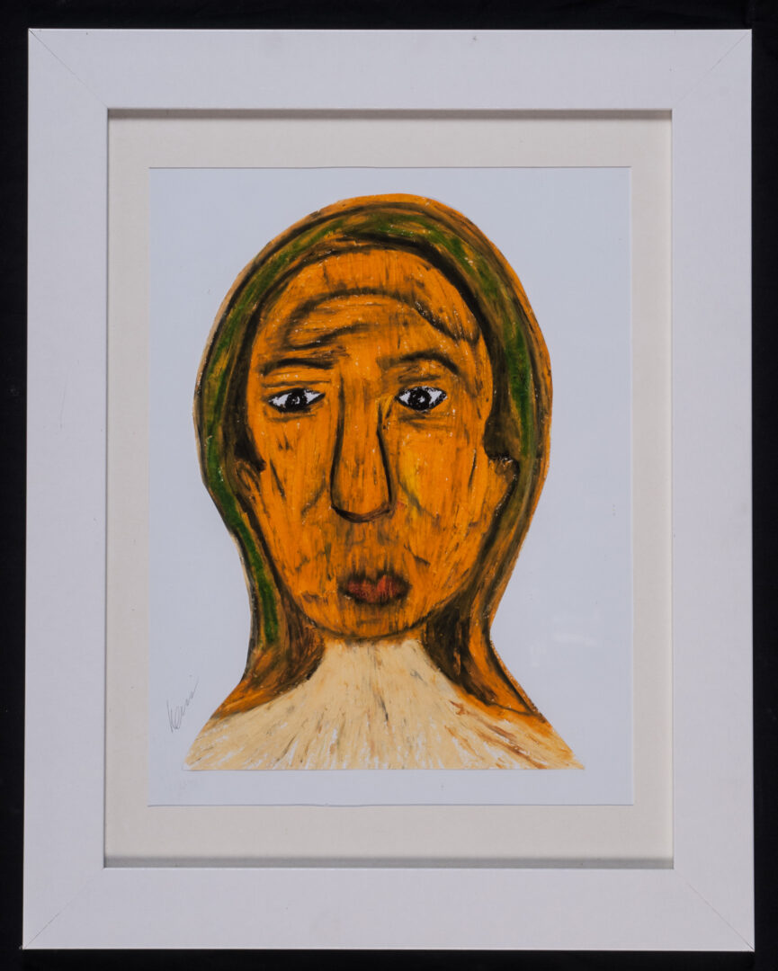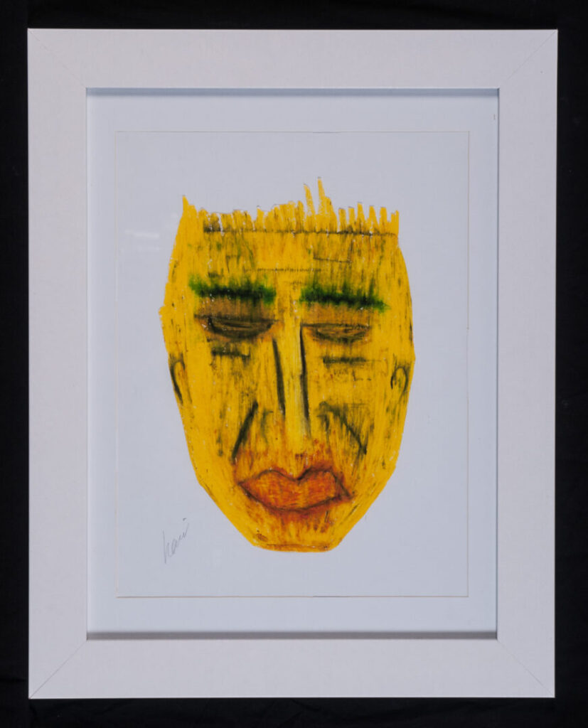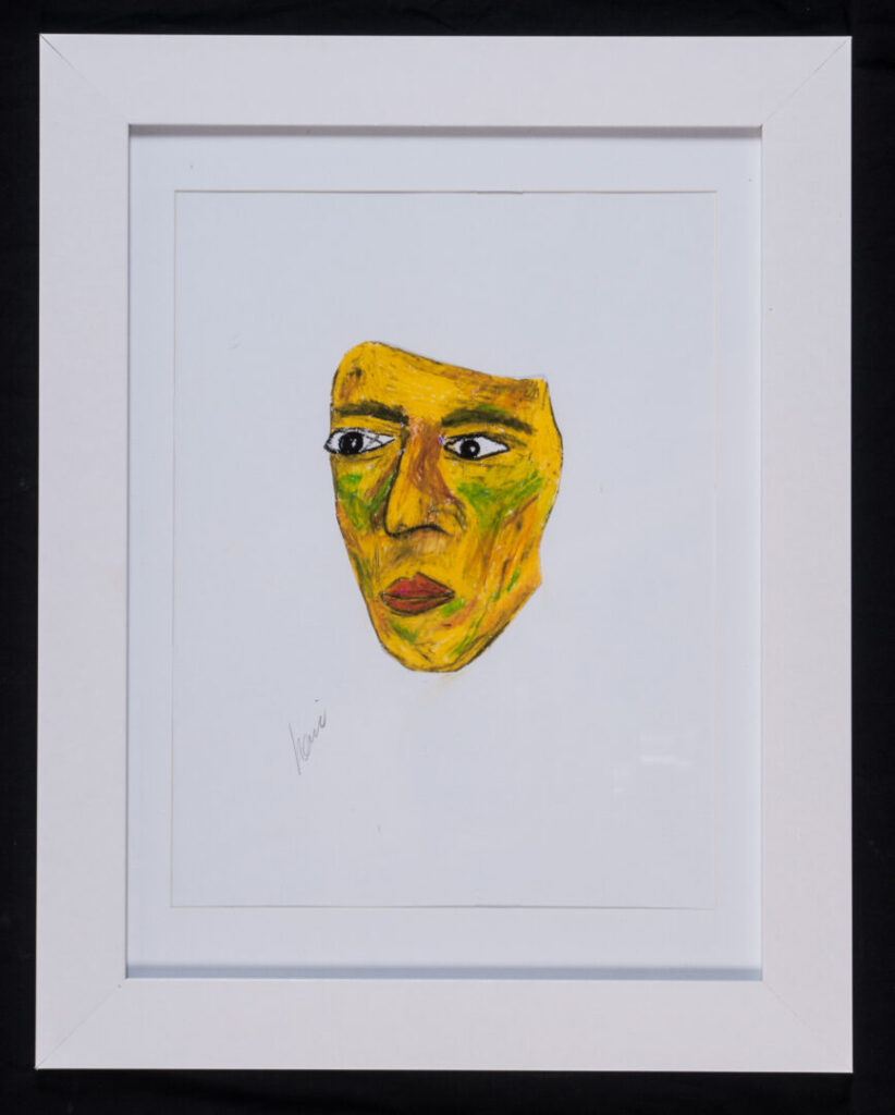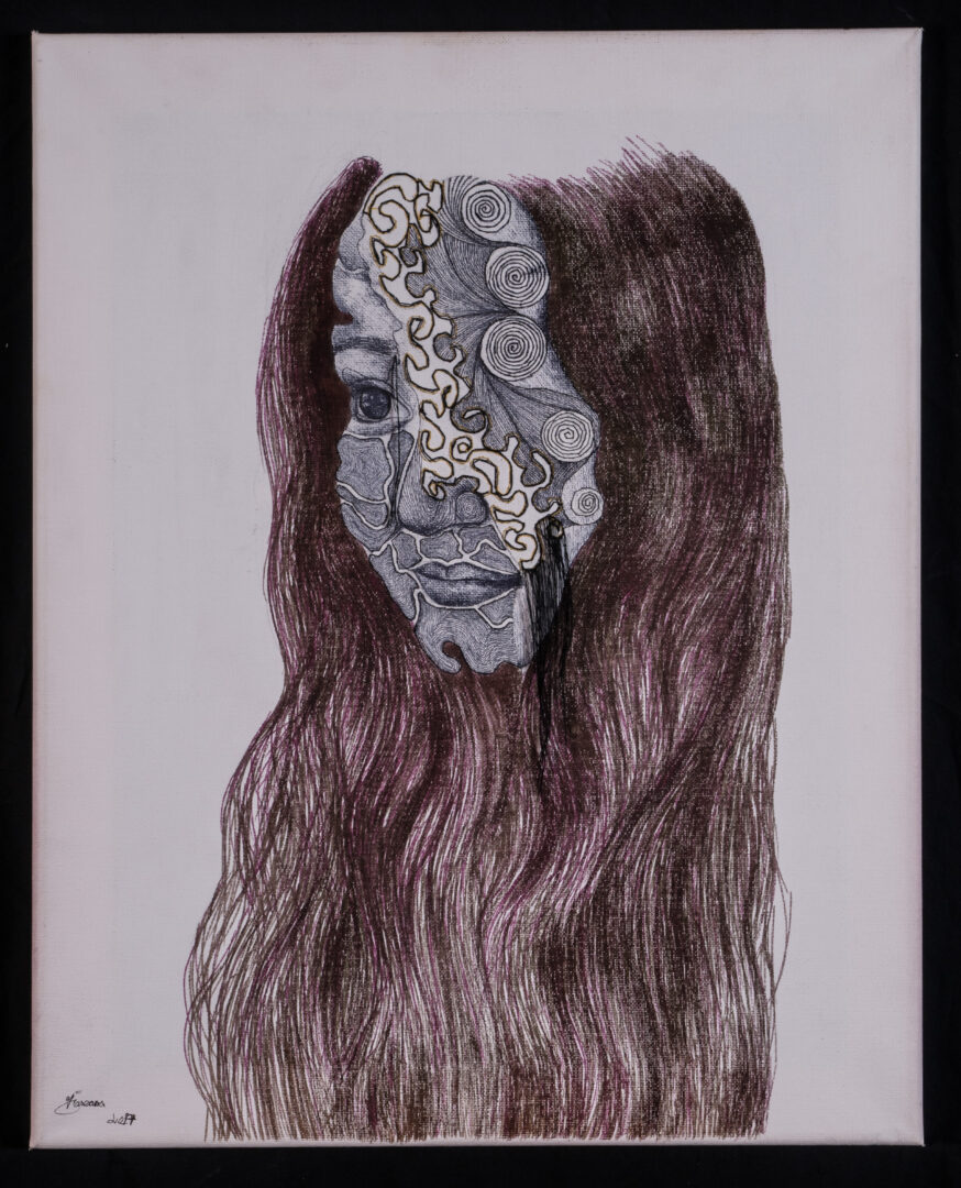 ‘This artwork is my self-portrait. It represents my identity. I worked on a canvas with markers for the hair, I used stitching on some part with threads, and a black fine liner pen. My artwork does not have a title.’