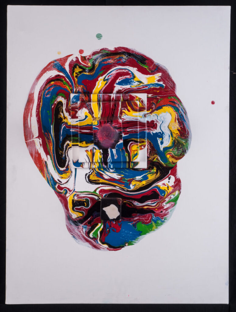 ‘This work is an abstract work. It was created by different layers on top of each other. I chose each colour to show different feelings during my first five years being in my new homeland, Australia.’